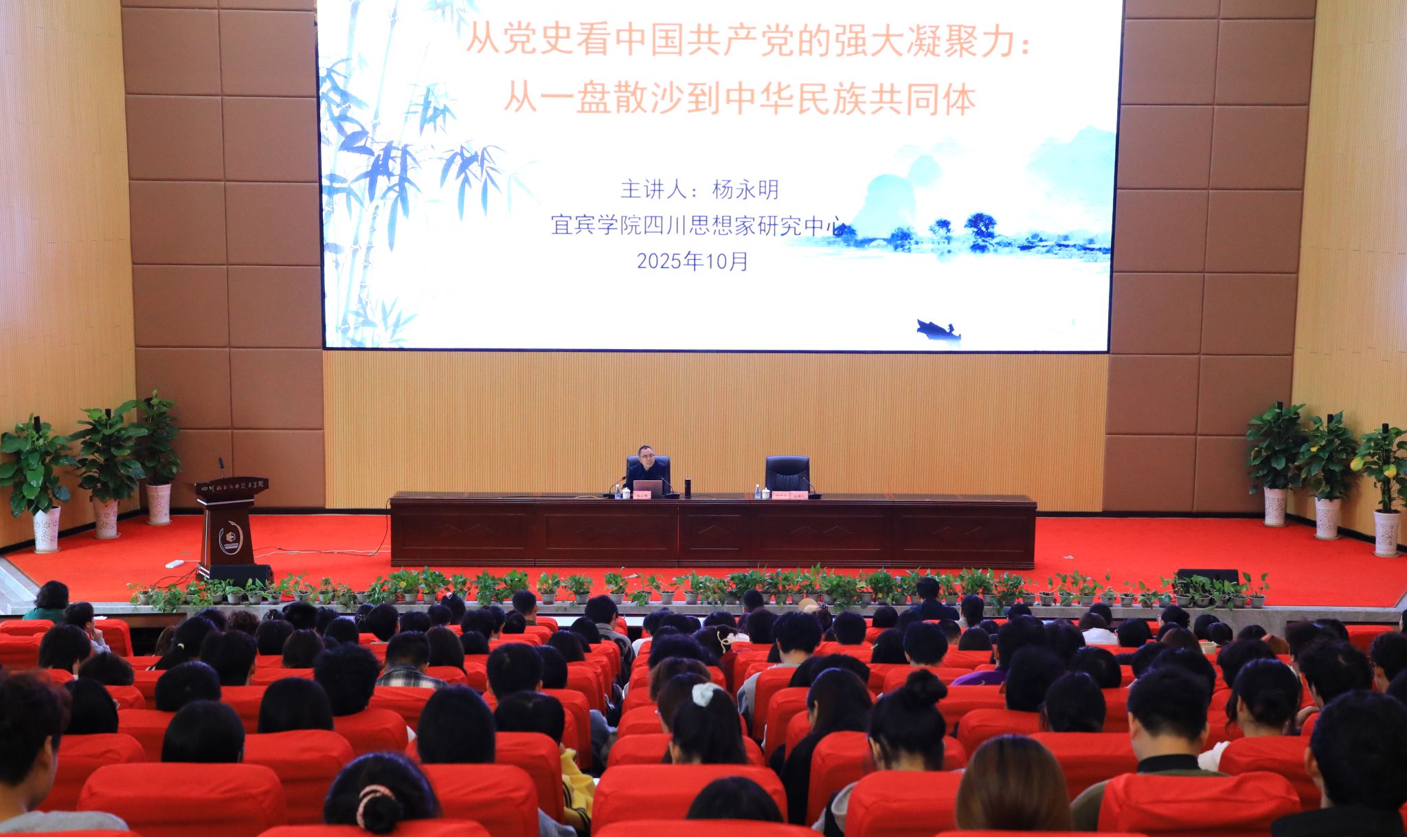 2025年10月22日,四川省铸牢中华民族共同体意识高校巡回宣讲活动走进四川化工职业技术学院。作为宣讲团核心成员,四川思想家研究中心主任杨永明教授以《从党史看中国共产党的强大凝聚力:从一盘散沙到中华民族共同体》为题,为300余名师生带来了一场兼具理论深度与实践温度的专题宣讲。